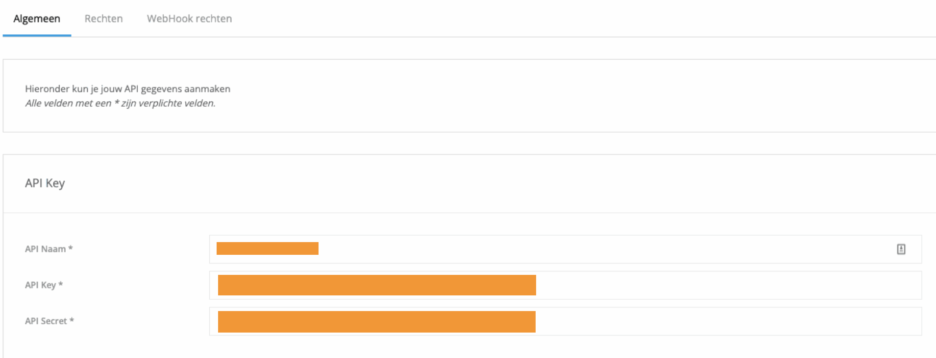 De API Key en API Secret worden automatisch aangemaakt.