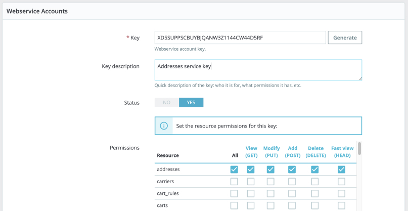 - Klik vervolgens op de knop ‘Add new webservice key’.